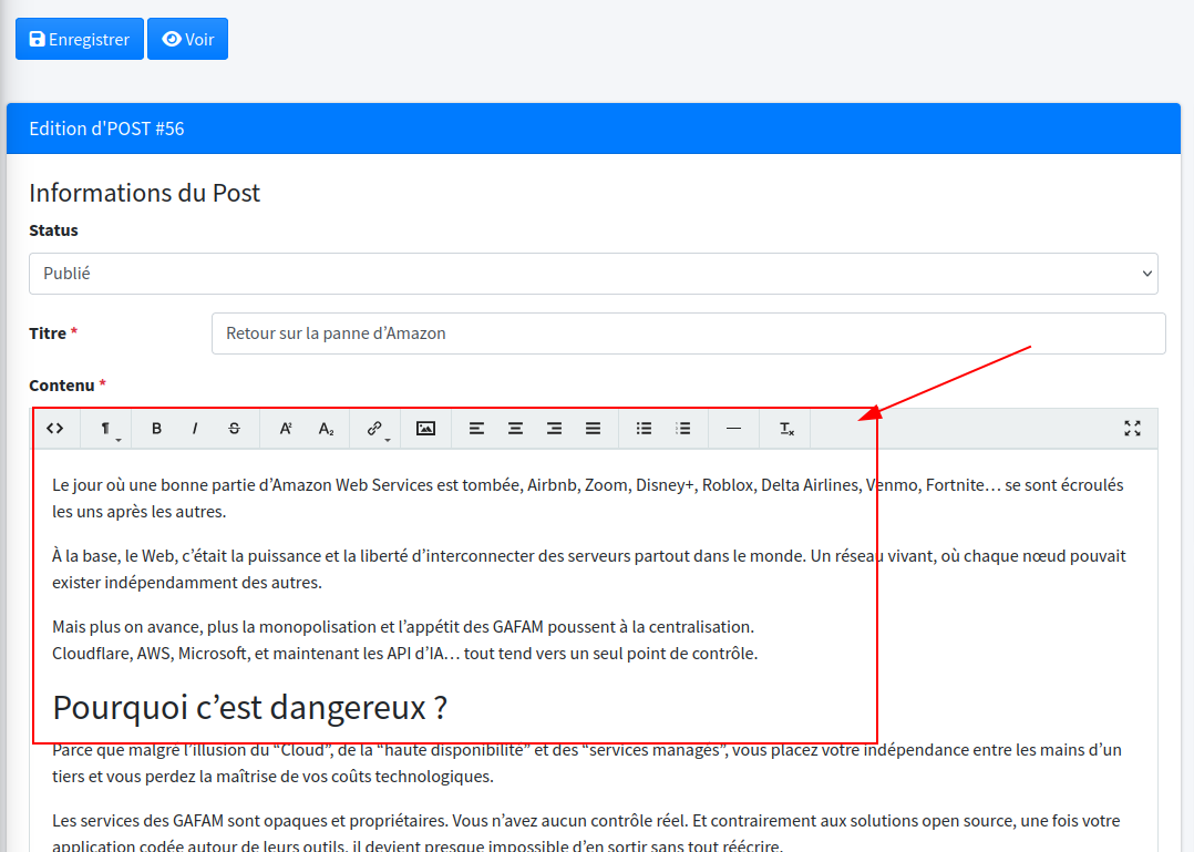 1 - Ajout d'un éditeur visuel pour l'éditeur d'article.